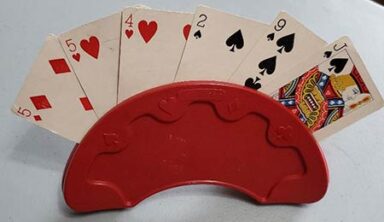 Cet appareil vous aide à tenir plusieurs cartes à jouer. Il peut être pris dans la main ou peut être utilisé à mains libres. Les supports à cartes que vous tenez réduisent la pression exercée sur les articulations des doigts en diminuant la force de préhension nécessaire.